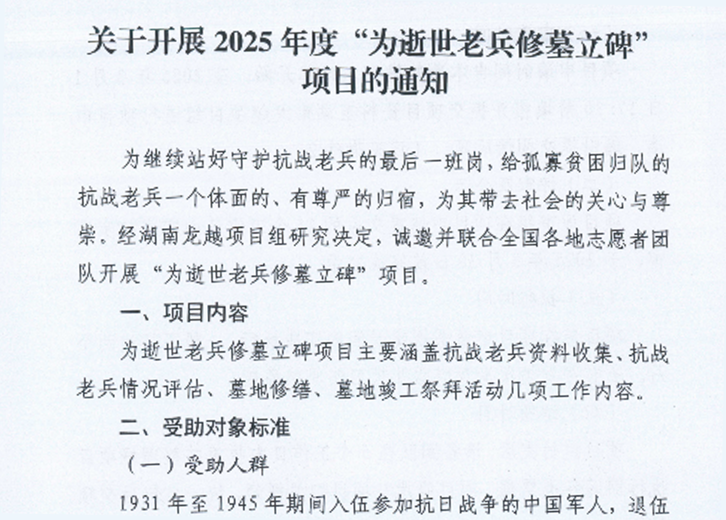 关于开展2025年度“为逝世老兵修墓立碑”项目的通知